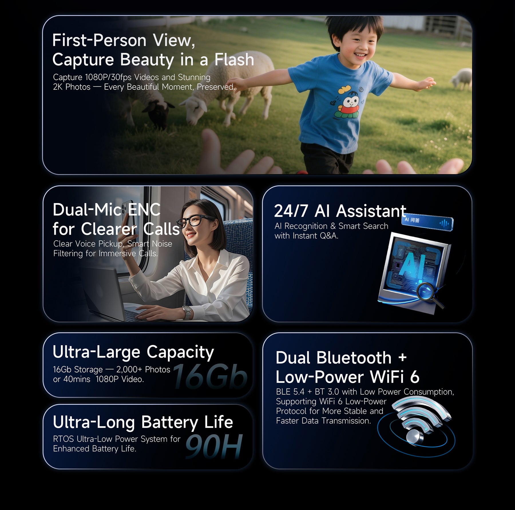 Enjoy hands-free intelligence, crystal-clear visuals, and an immersive AI experience — all in one sleek frame built for comfort and performance.